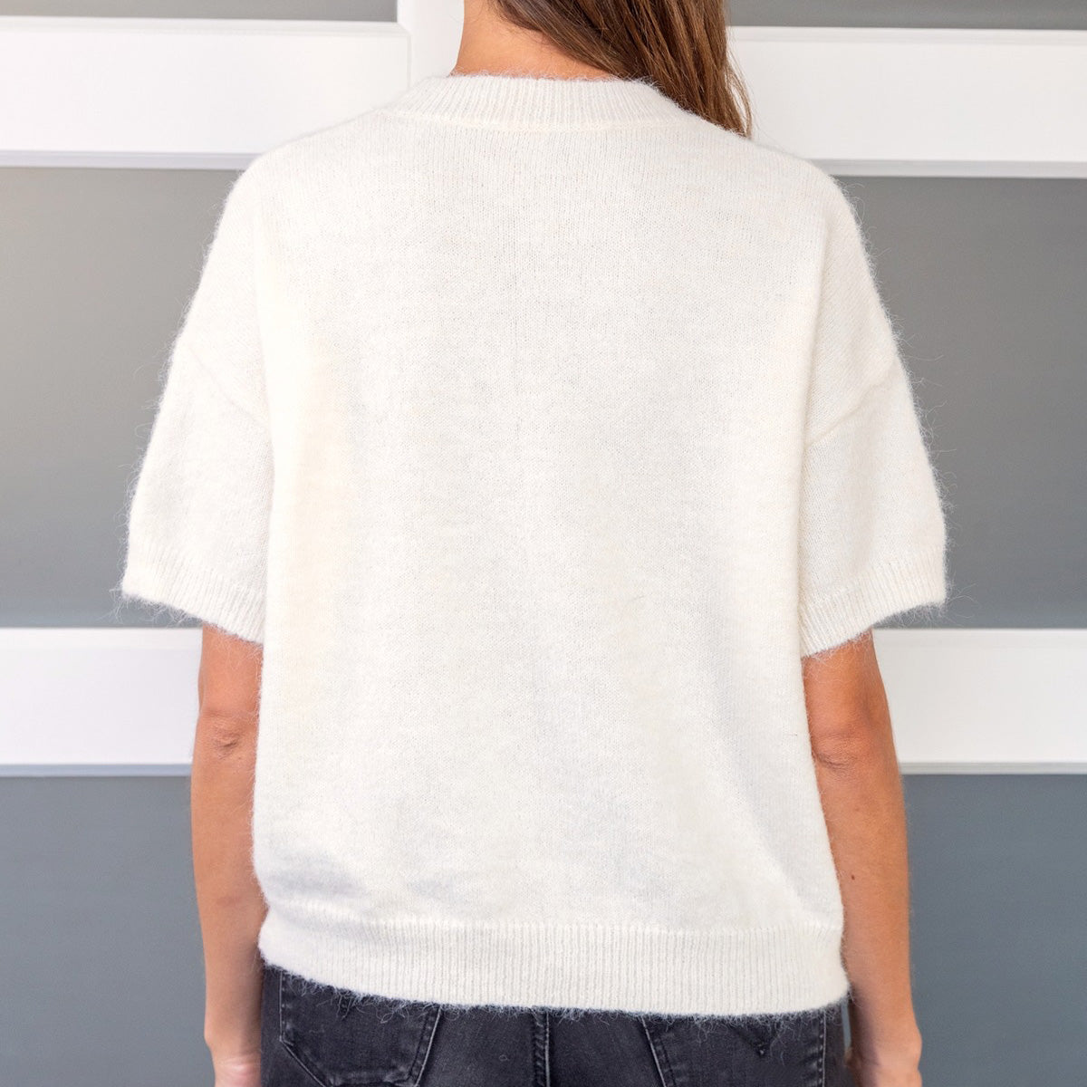 Laissez parler votre cœur avec ce magnifique pull en maille douce à manches courtes ! Parfait pour une transition élégante entre les saisons, il combine confort et style audacieux. Maille douce et duveteuse pour un confort optimal. Décontractée, avec des manches courtes pour une silhouette moderne.